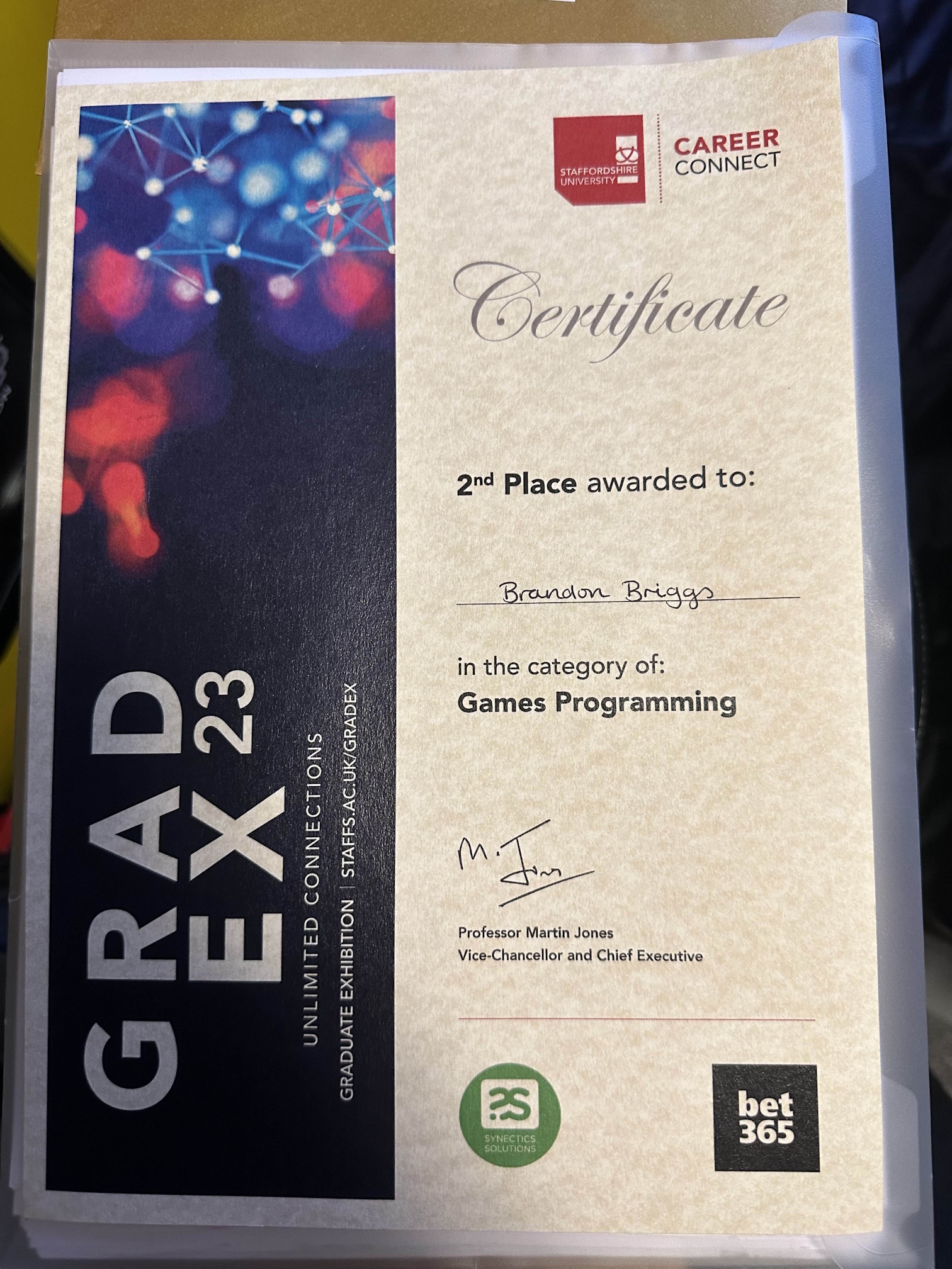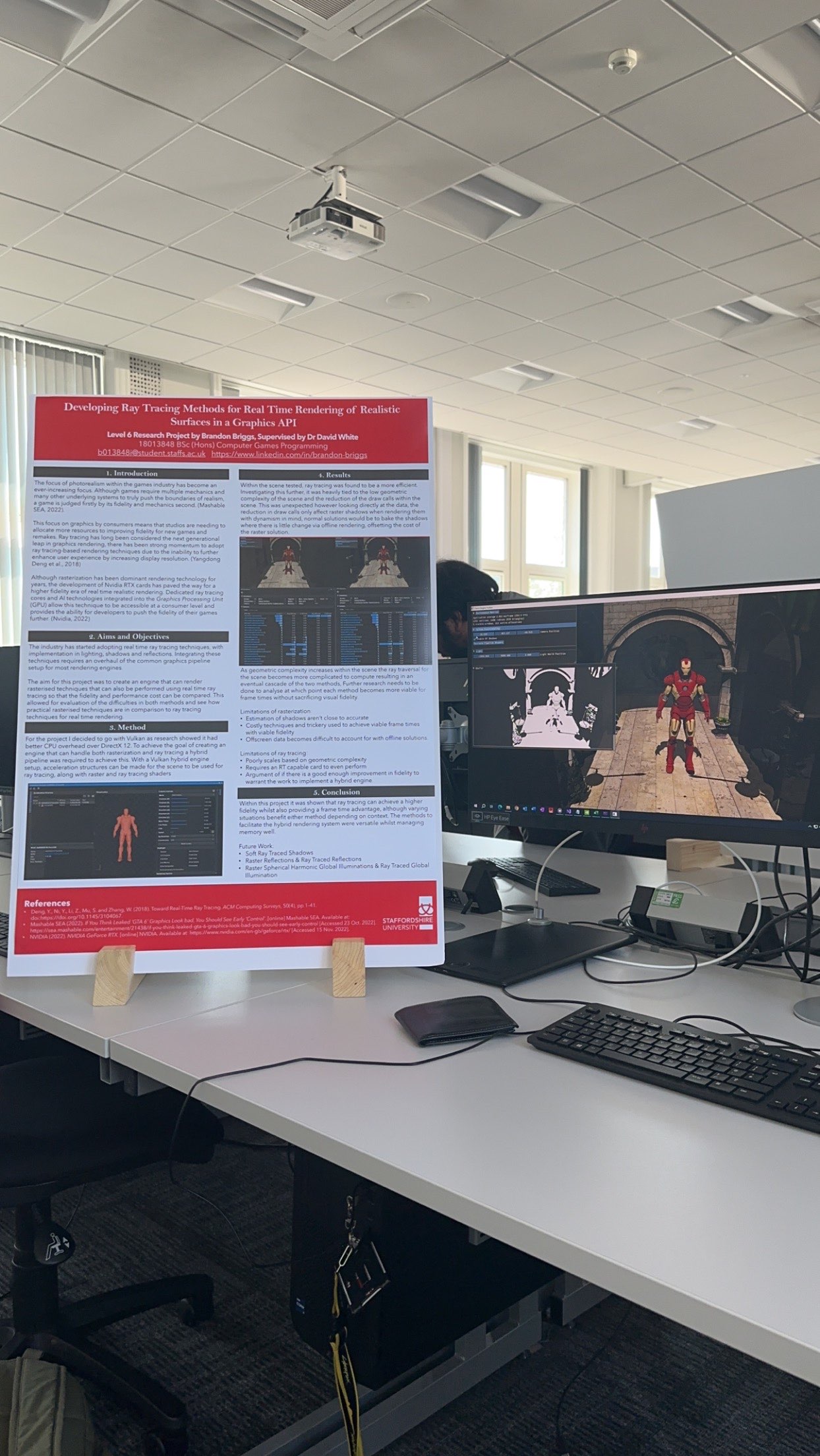 After finishing my project I submitted it for GradEx, Staffordshire University student showcase event. As part of this event, I condensed my dissertation into a small presentation and went on to win 2nd place out of around 100 Games Programming students.