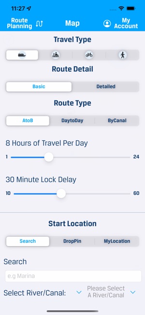 Offline Route Planning: Allowed users to plan routes along the canals without needing a signal. Built using A* pathfinding on a proprietary dataset, with customisable routing settings to suit individual preferences.
